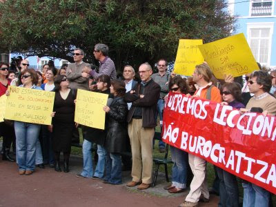 Numa altura em que a nossa vida nunca esteve tão complicada, com os cortes nos nossos salários, com o congelamento do nosso tempo de serviço e com uma avaliação que no mínimo dizemos que é uma farsa, acho incompreensível o alheamento a que têm sido votadas as iniciativas (abaixo) dos dois sindicatos dos professores dos Açores. Com efeito, tenho conhecimento de que nem dirigentes dos referidos sindicatos, nem delegados sindicais têm apresentado nas escolas quer o requerimento do SDPA, quer a reclamação do SPRA e é diminuto o número de docentes que já o fez.